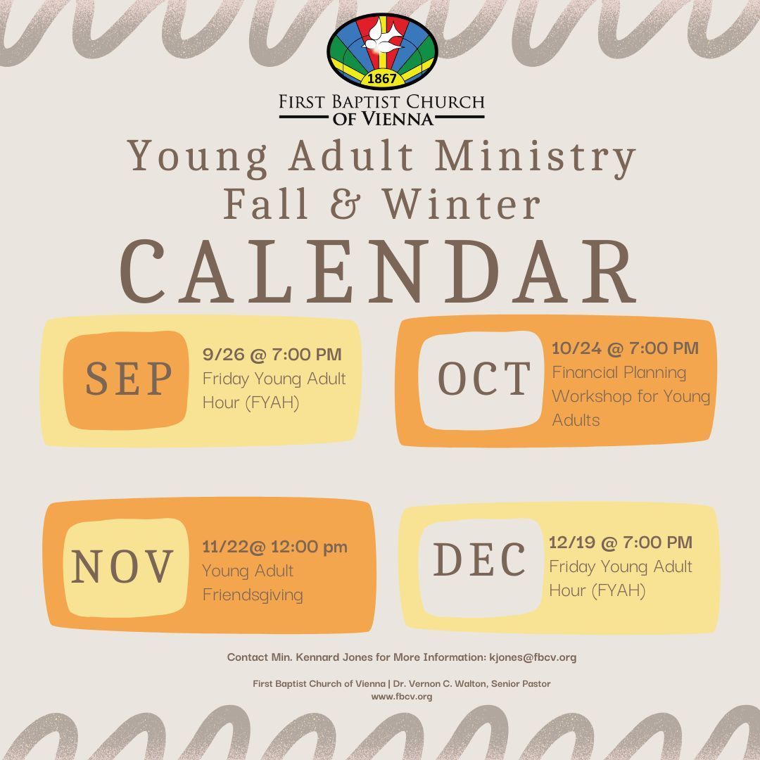 Our Young Adult Ministry is a dynamic group of individuals who are passionate about deepening their relationship with Christ and building meaningful connections with one another. Whether you are a college student, young professional, or anywhere in between, you will find a welcoming environment that supports and nurtures your spiritual journey.